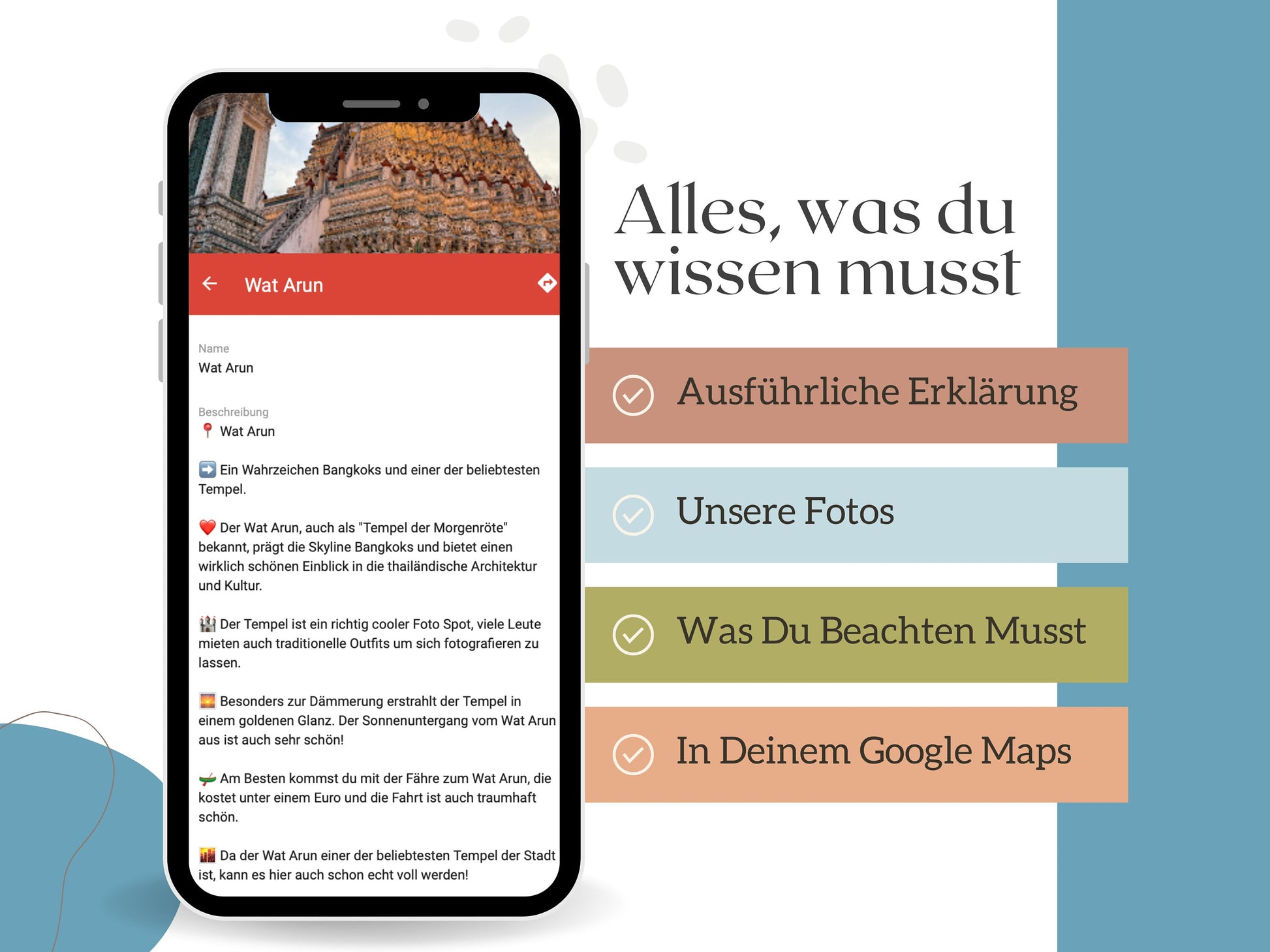 In diesem Bundle erhältst Du unsere interaktive Reise-Map mit über 60 Pins 📍 zu allen wichtigen Highlights in Bangkok.