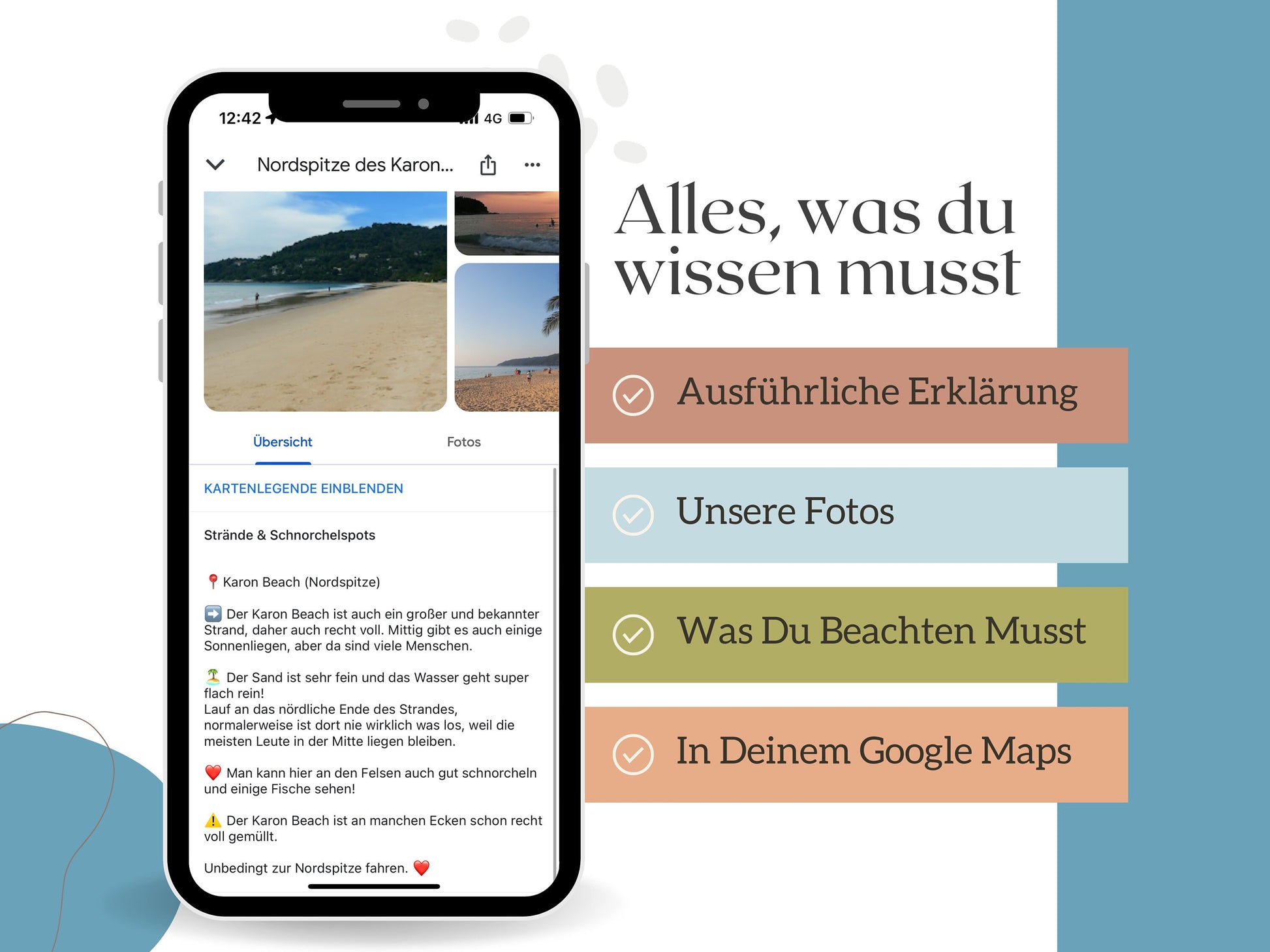 Kurz gesagt: Du musst nichts mehr aus YouTube/Blogs/PDFs aufwändig in Dein Google Maps übertragen, sondern hast alles direkt auf deinem Handy oder Laptop. (Und Du kannst ab jetzt alle YouTube Videos zum Reiseziel ganz ohne Handy in der Hand genießen)