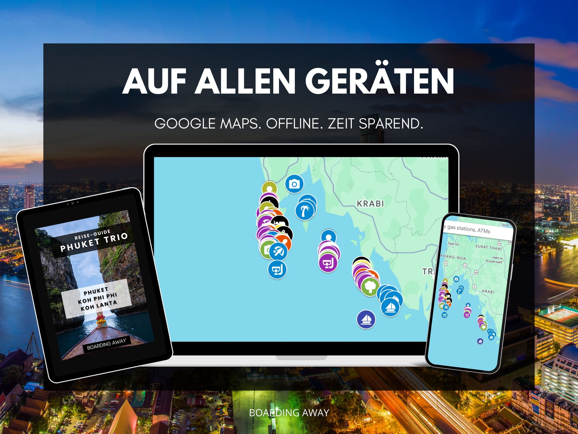 E-Book und Offline-Map liefern dir alle wichtigen Infos direkt auf dein Handy, auch ohne Internet.