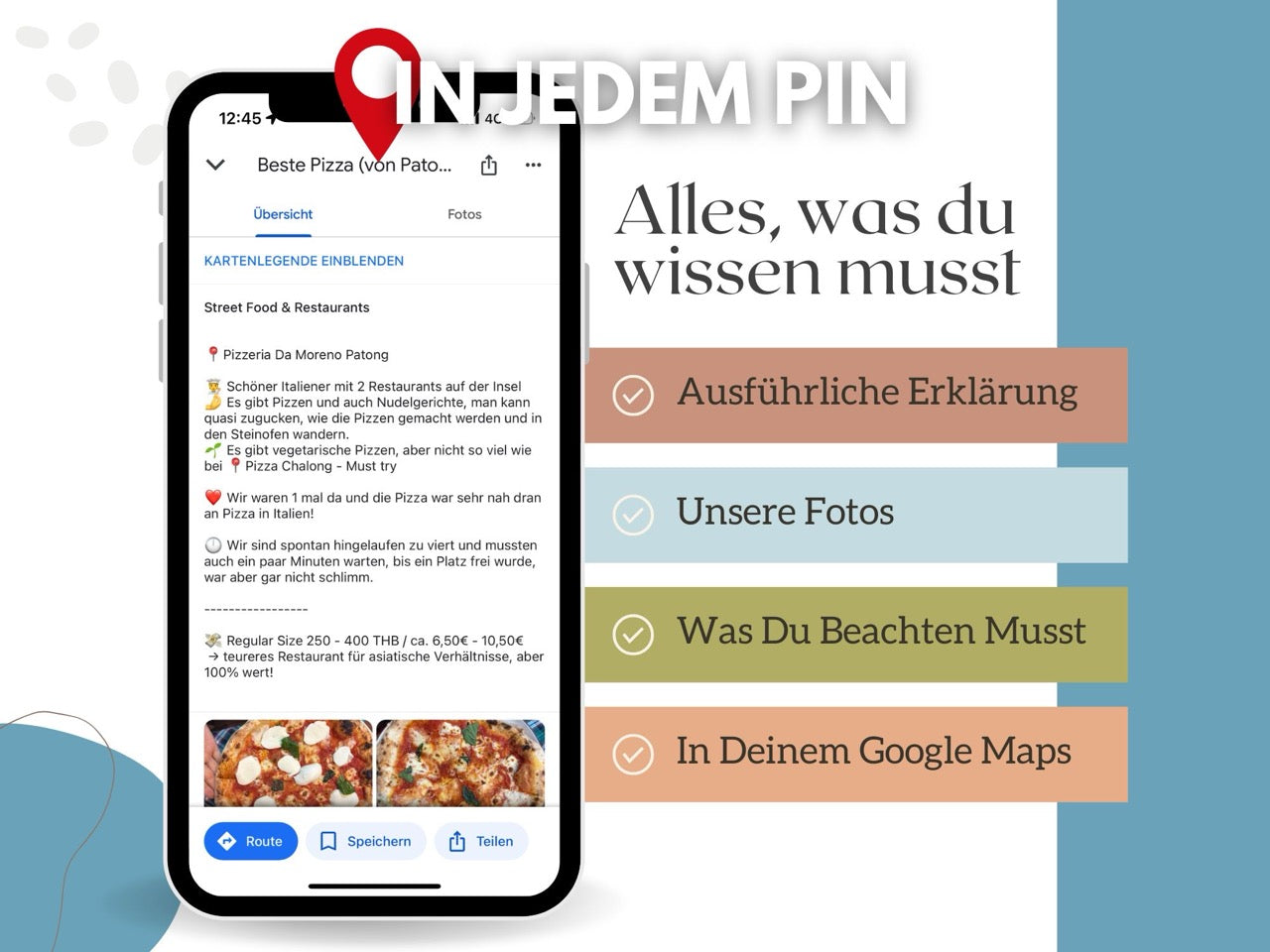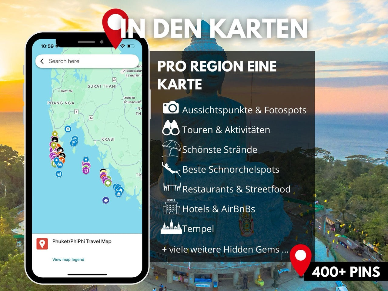 In diesem Bundle erhältst Du ALL unsere interaktiven Reise-Maps mit über 400 Pins 📍 zu den Regionen: Bangkok, Phuket, Koh Phi Phi, Koh Lanta, Koh Samui, Koh Phangan, Koh Tao, Koh Chang, Koh Mak, Chiang Mai, Chiang Rai und Pai. Kurz gesagt, zu den ganzen wichtigen Regionen in Thailand. 🇹🇭