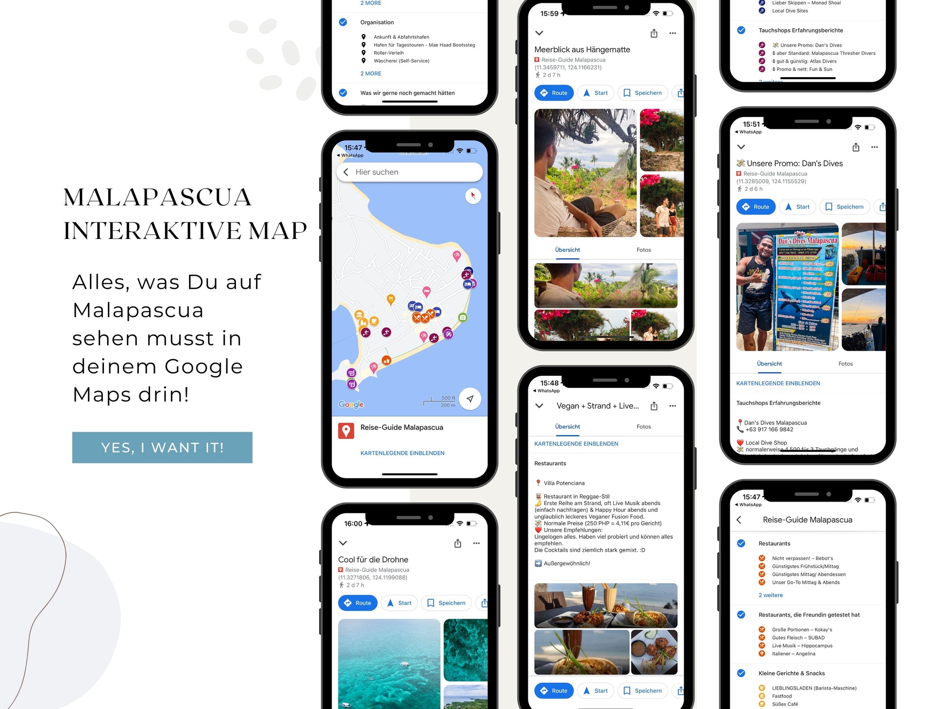 In diesem Bundle erhältst Du unsere interaktive Reise-Map mit über 50 Pins 📍 zu allen wichtigen Highlights auf Malapascua.