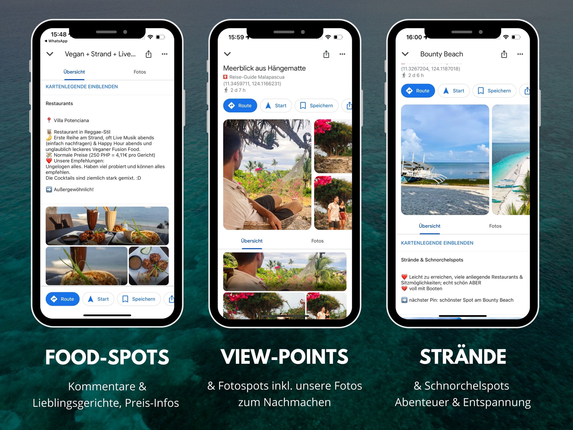 - Beste Strände, Schnorchel- & Tauchspots, Viewpoints, Fotolocations und Restaurants-/Street Food/Café-Empfehlungen