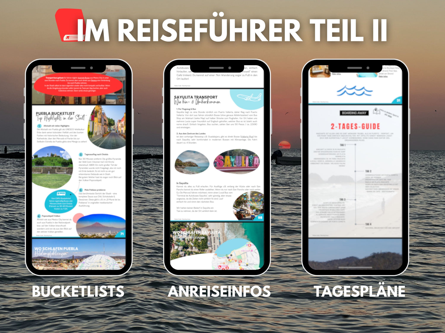 Dank Vorbereitungskapiteln (zu z.B. Reisezeit, Transport, Sicherheit, Sim Karte, Mietwagen Infos ...) weisst du genau, was dich im Mexiko Urlaub erwartet.